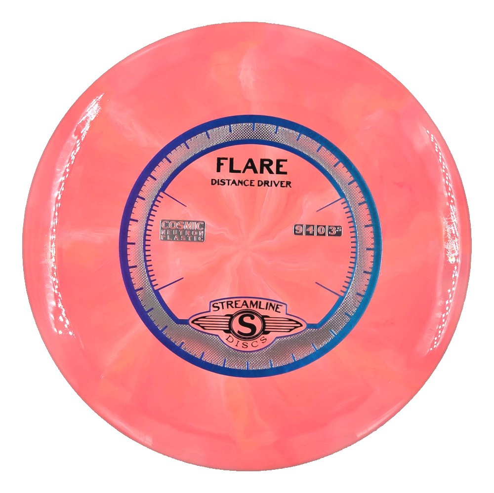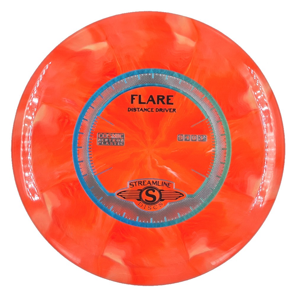 The Flare is the first overstable distance driver from Streamline and is designed for flights with a minimal turn, ending with a powerfully overstable finish, and a reserved glide to prevent going long on the approach. The Flare debuts the new 19mm Driver class making it the first Streamline Speed 9 disc. A truly versatile disc whether fans are looking for something that can handle even the highest power throws, fighting the strongest winds, or for a wide range of utility shots, the Flare can handle them all. Burning brightly on the course, the Streamline Flare is coming to the rescue!