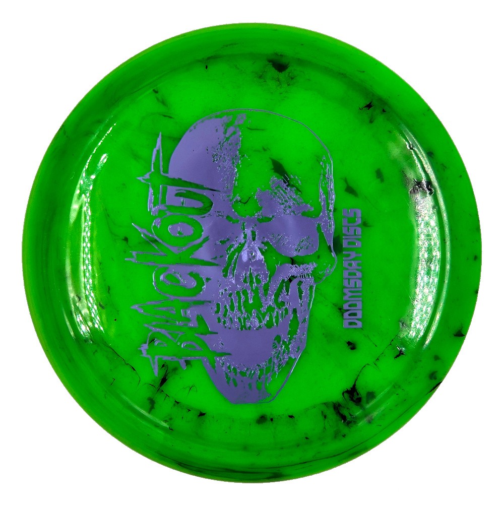 The Blackout is one of the favorite discs in the Doomsday Discs lineup, as an 8-speed control driver that is understable enough to hold a straight line and resist the fade for much of its flight. The Biohazard premium plastic adds a transparent look with a lot of black and red splotches and a fun, flexible, grippy feel.