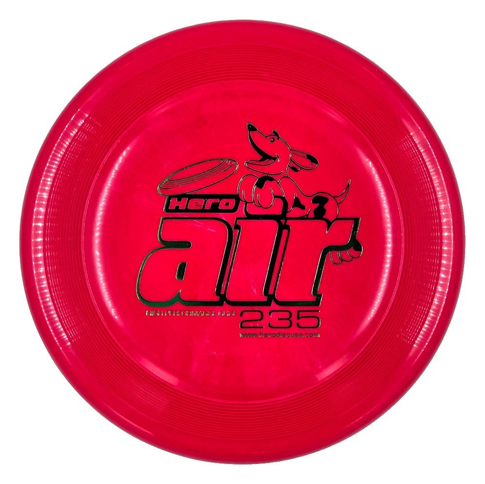 Hero disc is pleased to offer you one of the finest K-9 flying discs on the market, the Hero Air 235 model. Many top canine flying disc enthusiasts rave about the Hero’s friendly grip, straight glide, and true performance. Customers have complimented us on the softness and friendliness of the Hero Air plastic.