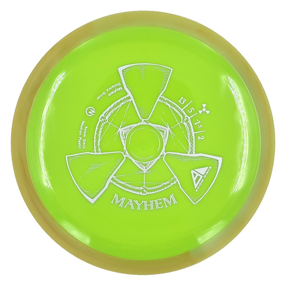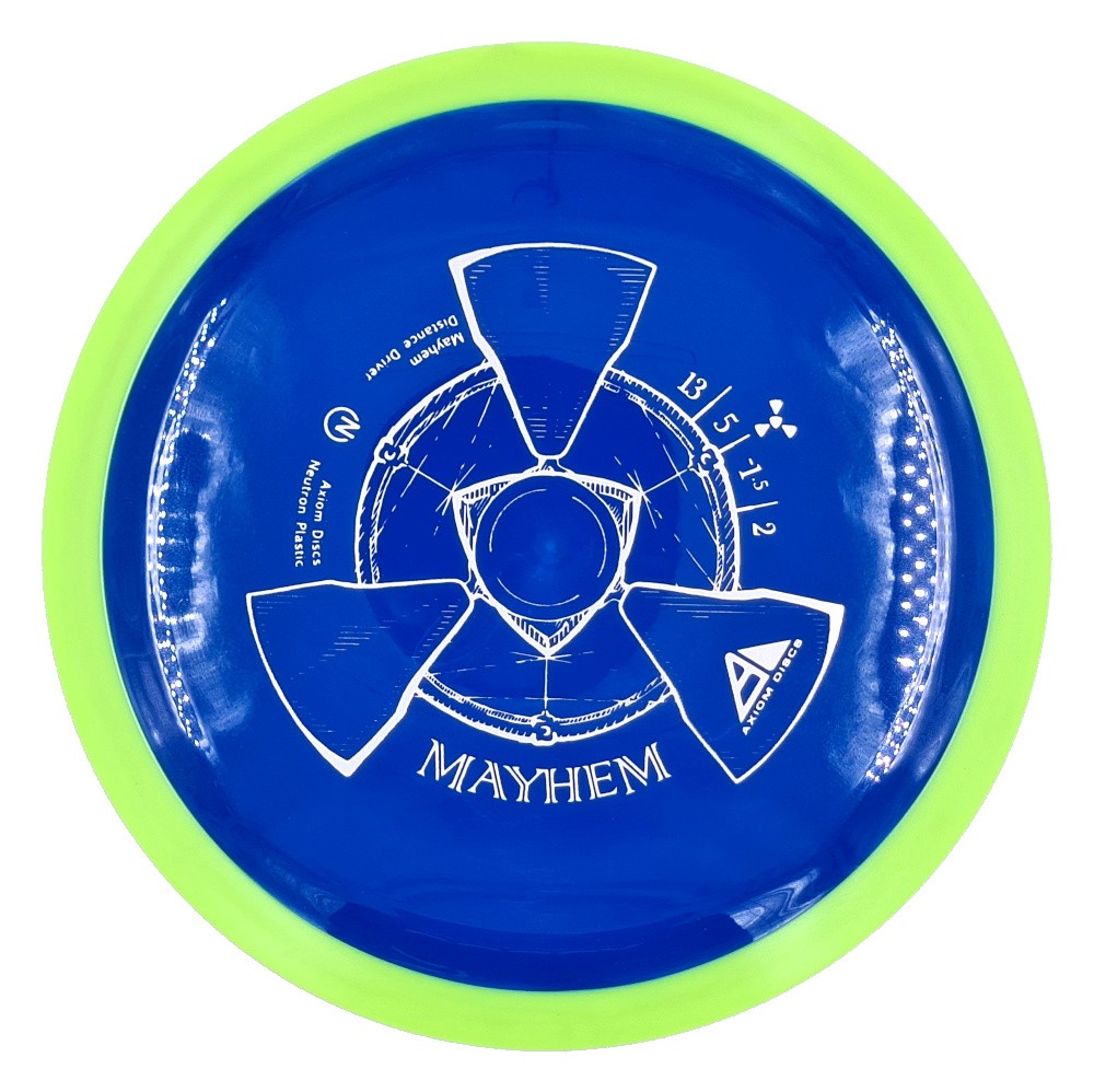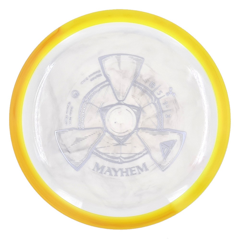 The Mayhem is part of a demanding high speed class, but its stability is softened a bit for easier straighter flights. Expert throwers will find the Mayhem ready to stand up and boom or drift over from flat, while average power throwers will be able to mash on it without fear of unmanageable turn.