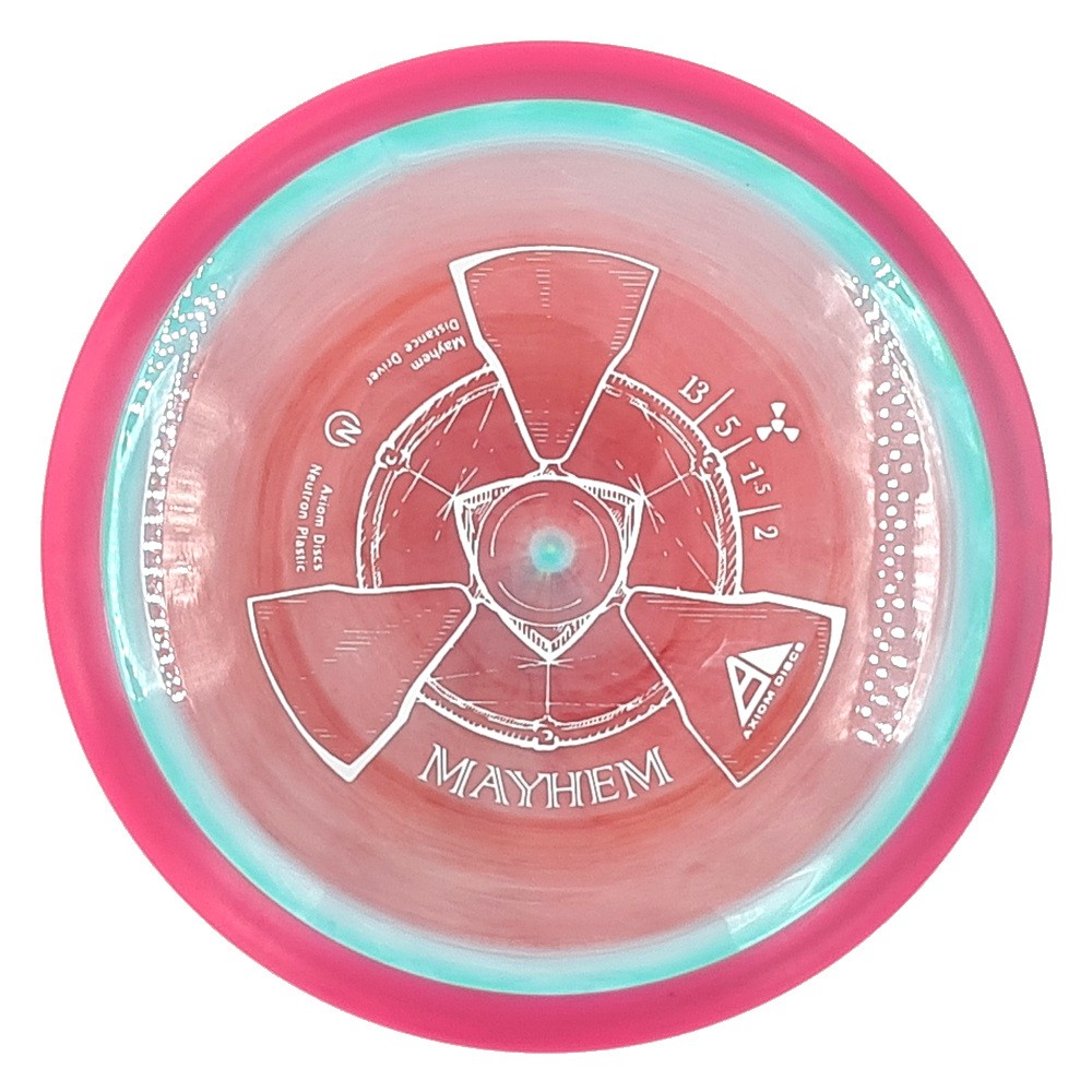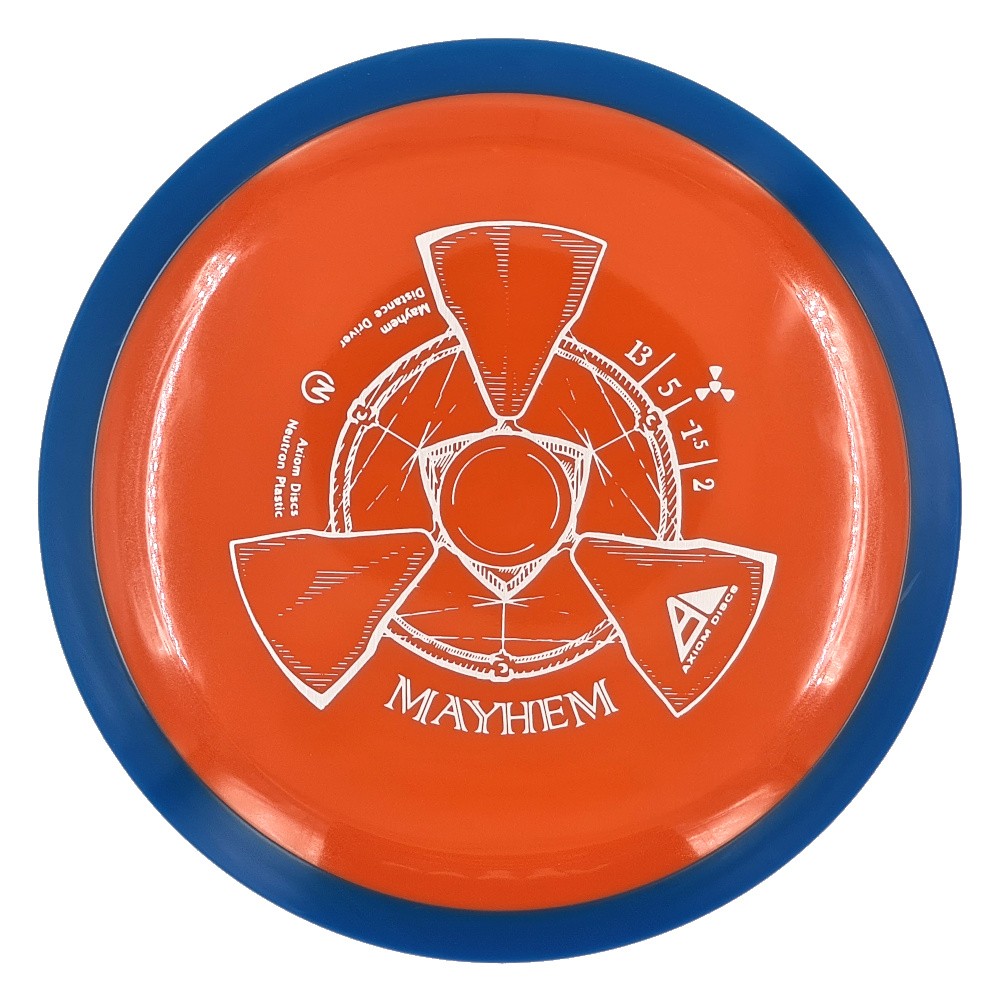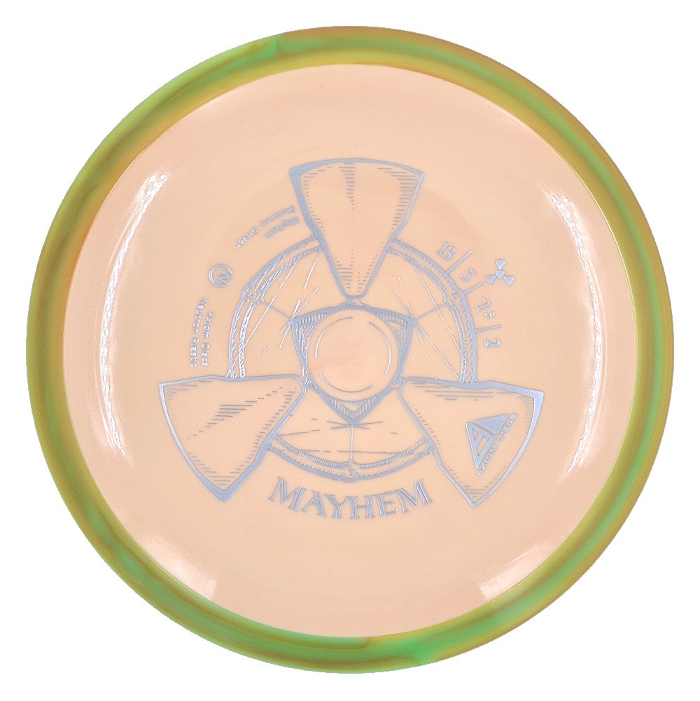 Mayhem has a responsive straight-stable profile and plenty of speed, making it a perfect workhorse driver for many advanced and expert throwers. Like the MVP 23mm class, the Mayhem has a pronounced dome to promote distance-covering glide. Mayhem is best compared to a beat MVP Octane.